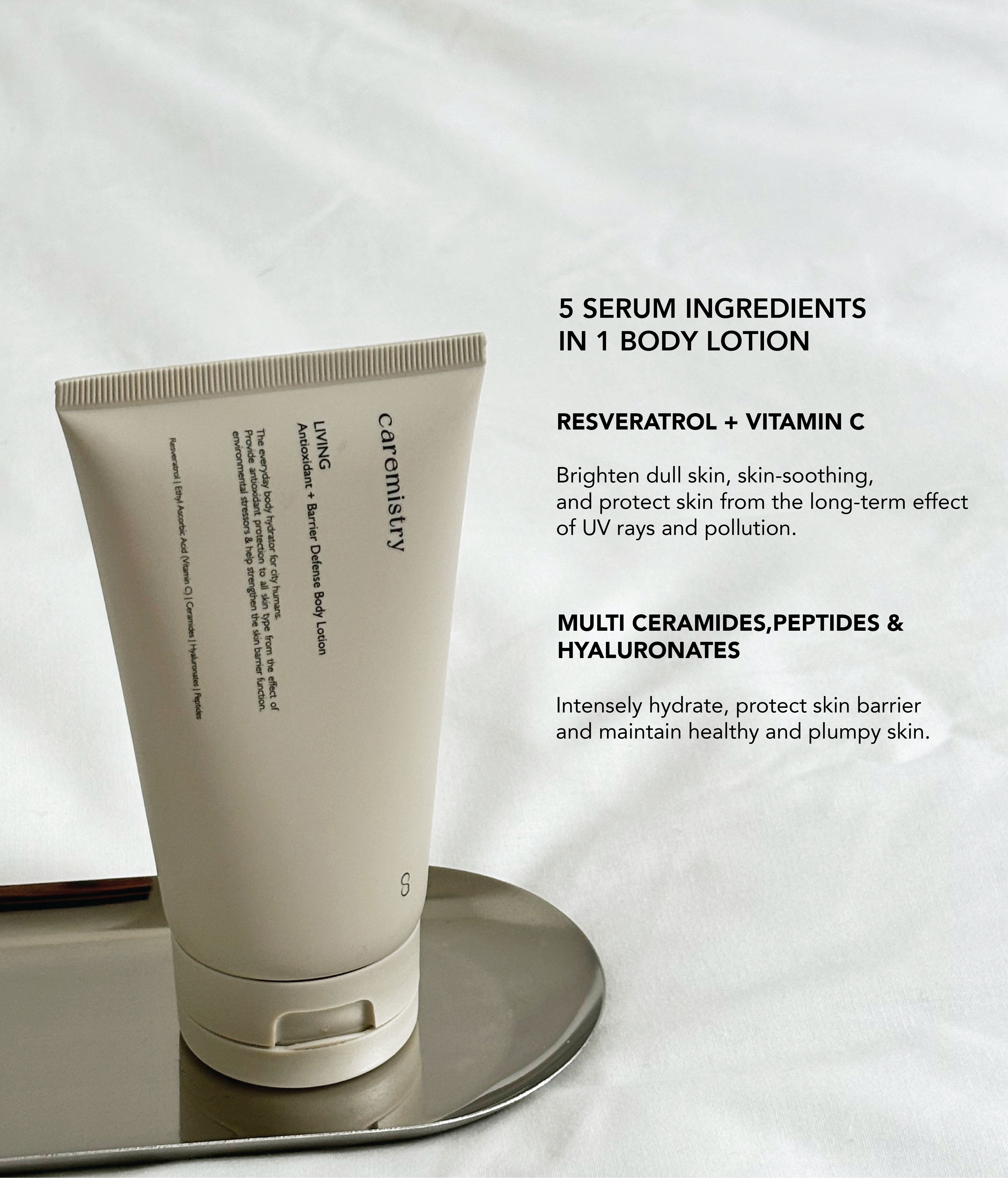 Caremistry LIVING Antioxidant + Barrier Defense Body Lotion merupakan perawatan kulit lotion dengan serum untuk tubuh yang memberikan banyak manfaat dalam 1 botol.